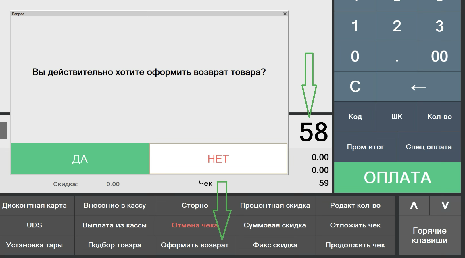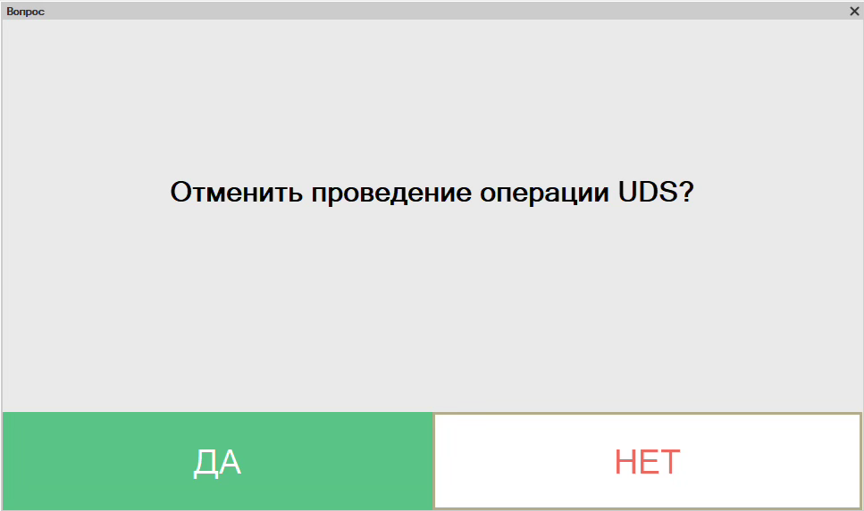 При выборе «ДА» транзакция в UDS будет отменена, и скидка по товарам убрана.