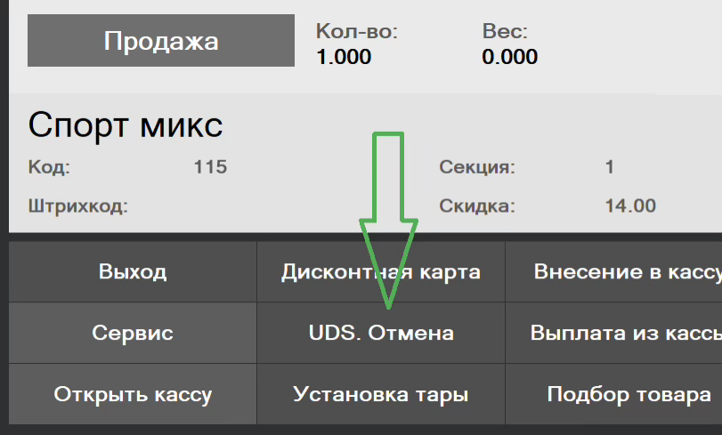 Шаг 4.После закрытия окна ввода скидки UDS в меню кнопка меняет название на «UDS. Отмена».